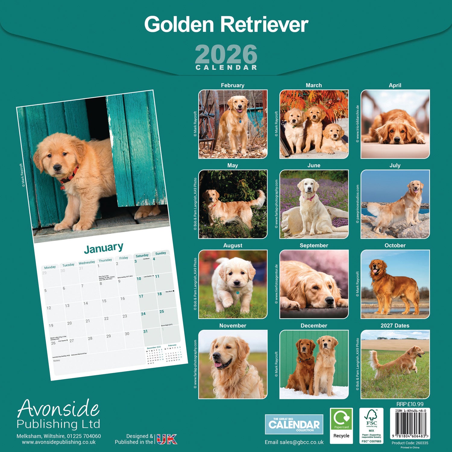 Stunning large-format wall calendar. Featuring a superb Golden Retriever photograph for each month and plenty of space for notes and reminders. A practical gift to treasure throughout the year.