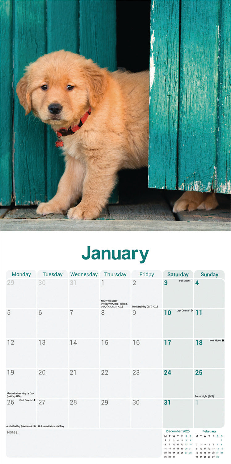 Golden Retriever wall calendar 2026