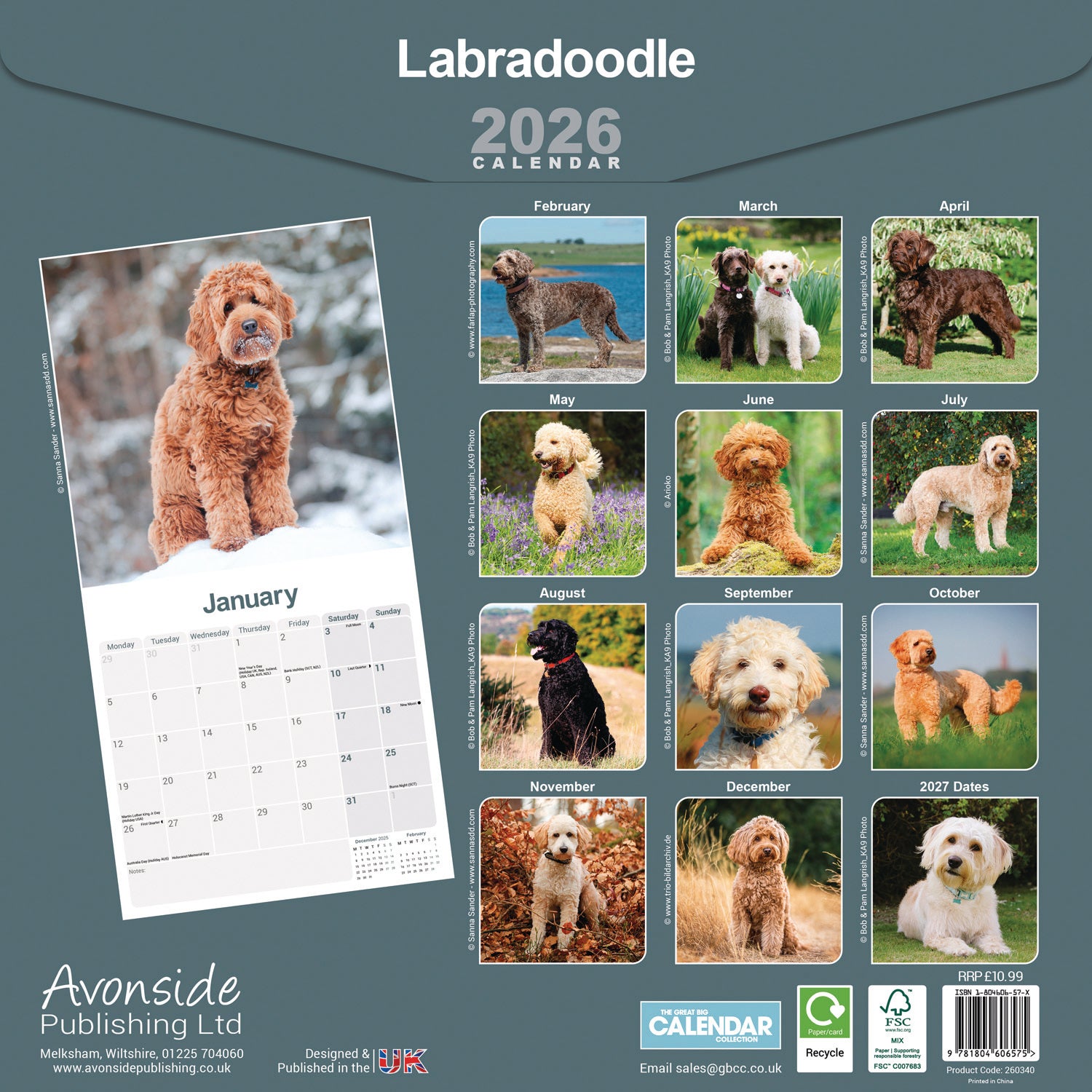 Stunning large-format wall calendar. Featuring a superb Labradoodle photograph for each month and plenty of space for notes and reminders. A practical gift to treasure throughout the year.