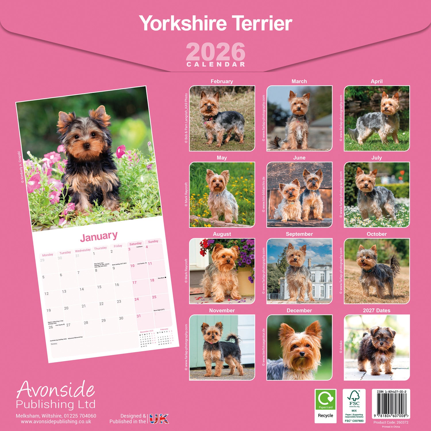 Stunning large-format wall calendar. Featuring a superb Yorkshire Terrier photograph for each month and plenty of space for notes and reminders.