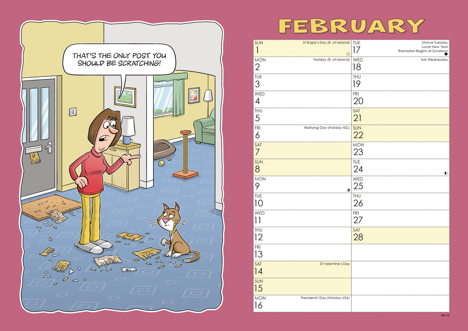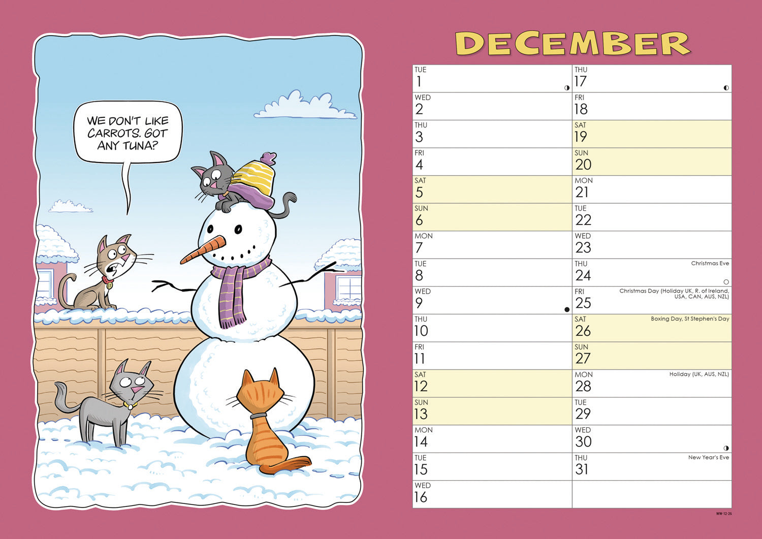 Brightly coloured cartoons and witty captions showing life with our feline friends.