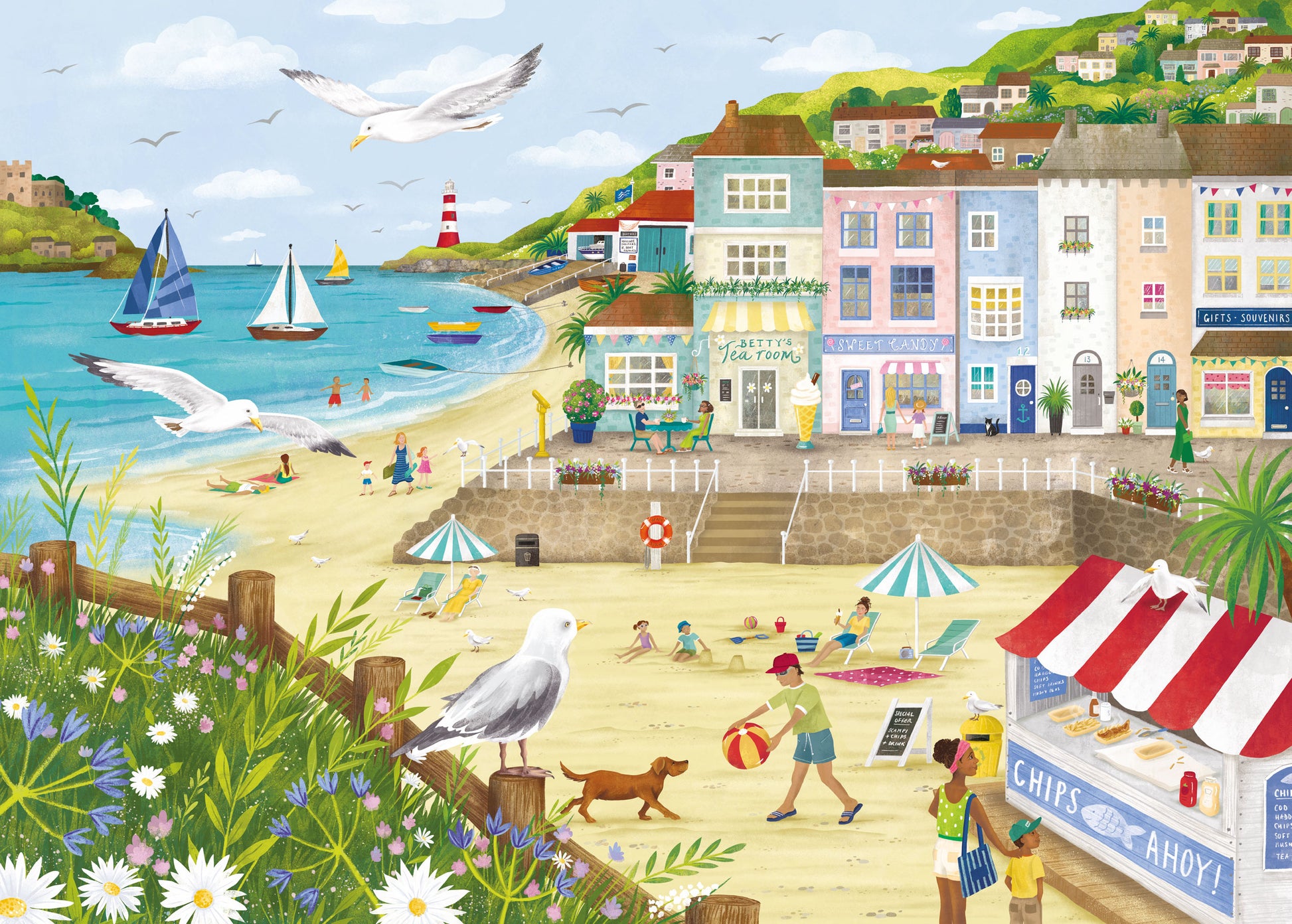 A quality 1,000 piece jigsaw featuring busy beach scene.