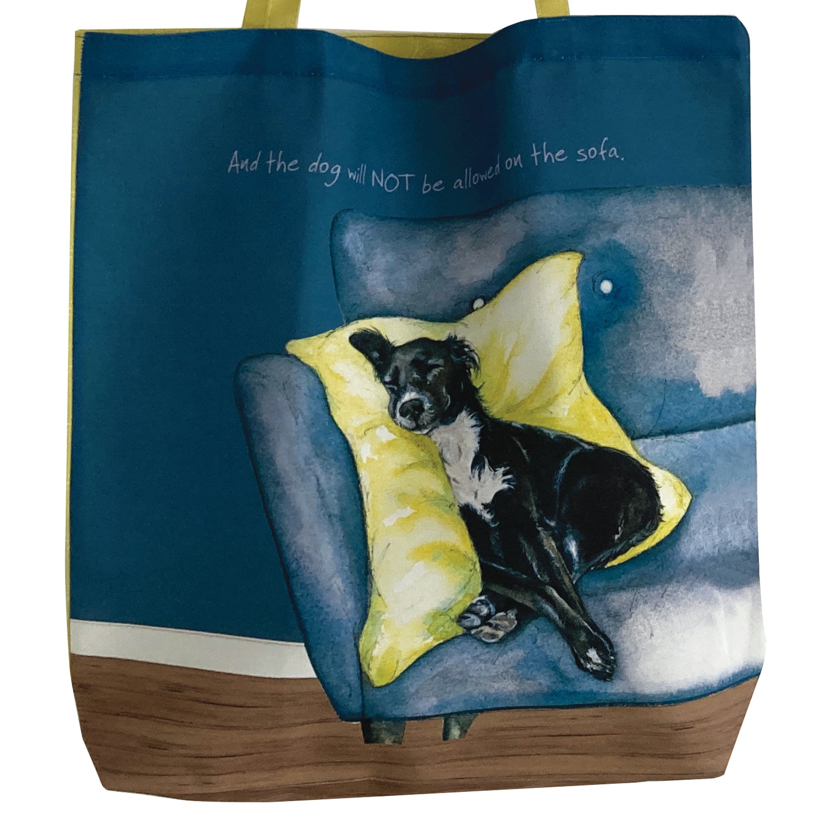 The dog and sofa tote bag