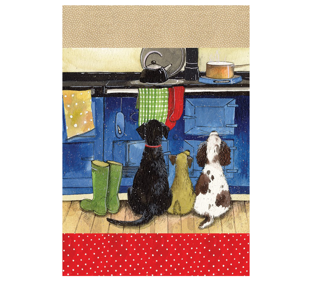 Cosy canines from Alex Clark decorate this 100% cotton tea towel.
