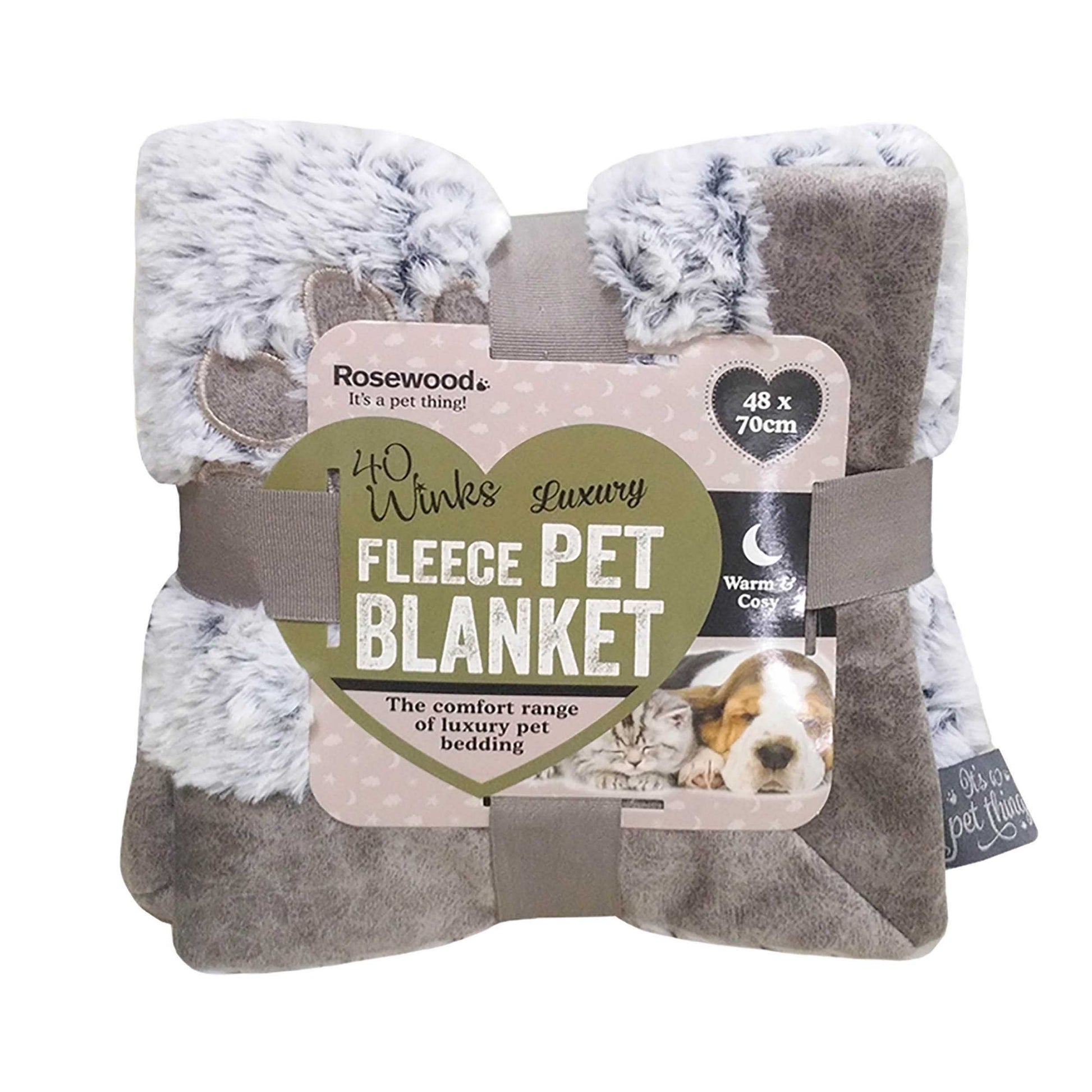 A soft, plush blanket for your pet's comfort. In practical, stylish grey plush with paw print detail.